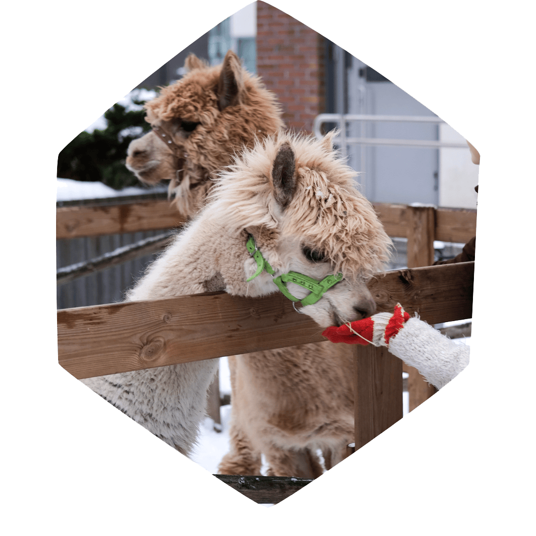 Klo 12–16 Ruoki ja paijaa alpakoita, ulkona allaspihalla